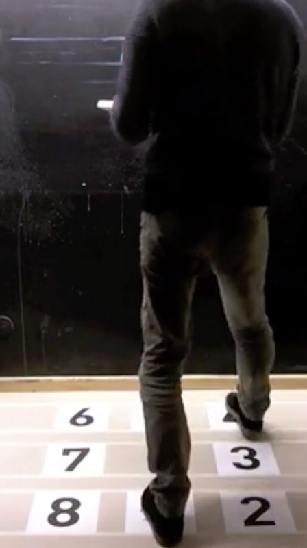 My movements are a result of a set of numbers defined in Philip Glass's opera. After receiving a certain sequence a few times, the mind automatically assumes the next one will be the same, resulting in a loss of contact with what actually is.