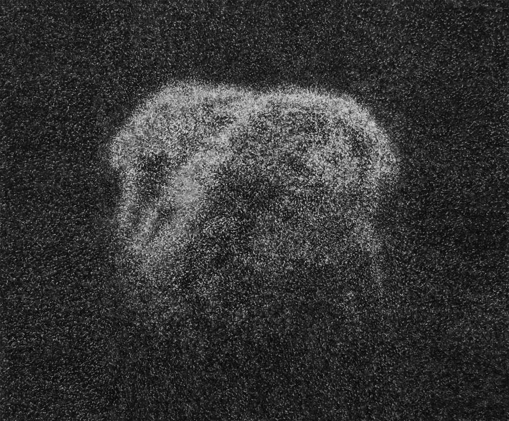 The painting is based on an image taken by New Horizons' LORRI instrument on July 14, 2015, from a distance of approximately 231,000 kilometers (143,000 miles). Hydra, one of Pluto's tiny moons, measures 43 x 33 kilometers (27 x 20 miles). Until its discovery in 2005, Hydra was known only as a fuzzy dot of uncertain shape and size.