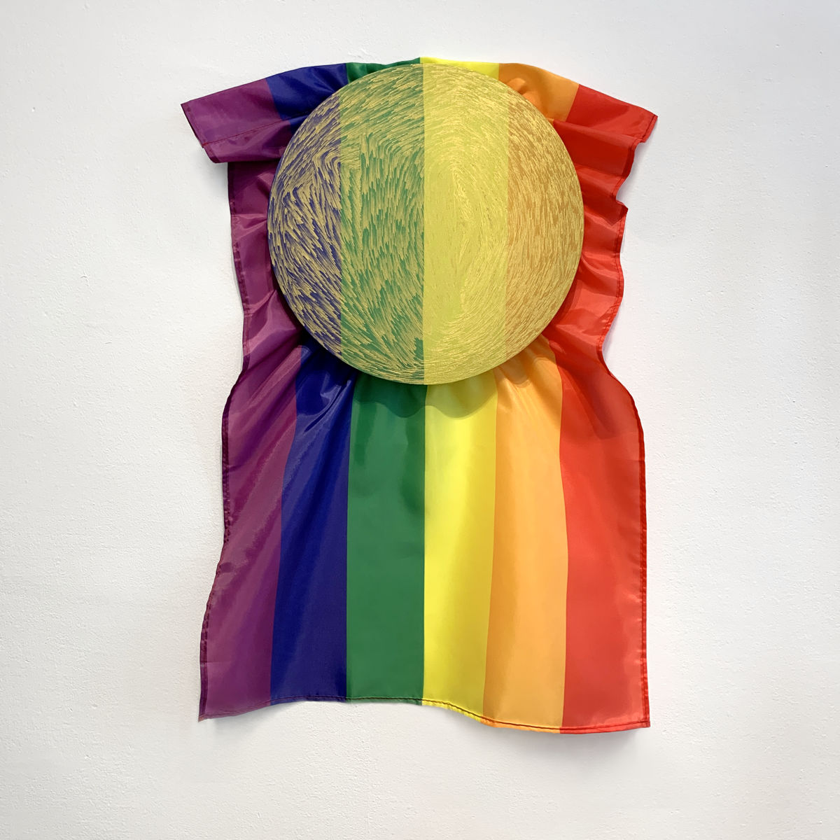 acrylic on flag, 2021, approx. 63 x 47 cm (circle Ø 30 cm)